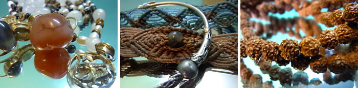 そして、洋服の他で人気なのはやはりパワーストーンを使ったジュエリーや鑞引きのヘンプで編んだブレスレット(マクラメ)。そして、インドに来ている大抵のヨギが一つは持っているルドラクシャのマーラ。