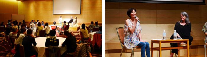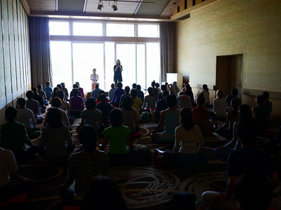 シンディー・リー先生と、吉川めい先生とのトークショーと、映画 『YOGAWOMAN|ヨガウーマン』 の上映会。シンディー先生とめいちゃんのトークショーでは、日本とアメリカで共に人気ヨガインストラクターとして活躍する二人のヨガ観や人生観を話し合ったり、今ヨガを練習している方、またこれからヨガを始めようと考えておられる方に向けてのメッセージなどを送られていました。