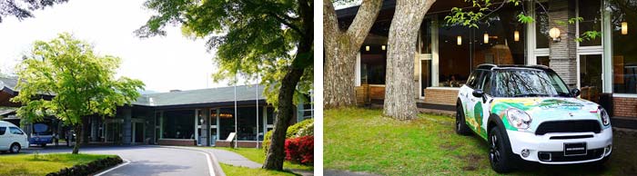 途中、ショッピングの誘惑に引きこまれそうで、大変でした・・・(^^;) 物欲 沸きまくり(笑)・・・と、玄関前にこのイベントのメインスポンサーのひとつである MINI の、トゥルーネイチャー仕様の展示カー(右)を発見!(☆☆) か、かわいい♪
