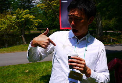 こ、コーヒーこぼしてもた~(><;)し、しかも白いシャツ!!!