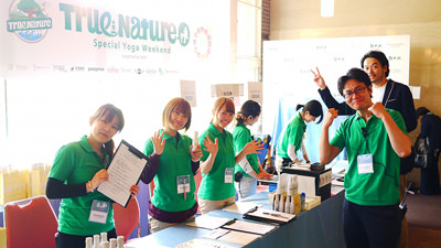 今回、色々な縁があって、このヨガイベントのお手伝いをしているそうです。ヨガジェネがトゥルーネイチャーに協賛させて頂いているのも、彼との繋がりがあったのが大きいかな。