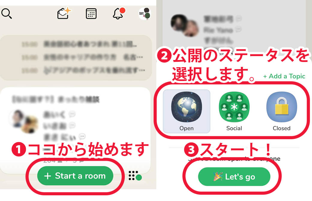 • Open:誰でもリスナーとして参加することができます