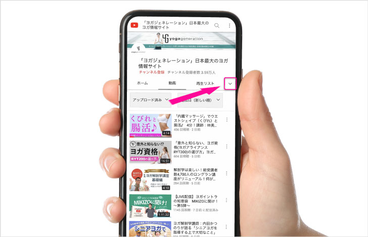 (検索しても動画が表示されない場合は、画面を下へスワイプすると、再読み込みして表示できることがあります)