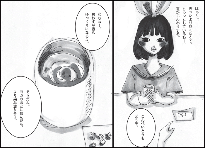 ヨガ漫画ヨガ漫画|第55話『マナモ、新茶を飲む』 2010年5月17日ヨガ漫画|第55話『マナモ、新茶を飲む』55 シーン155 シーン255 シーン355 シーン455 シーン555 シーン655 シーン755 シーン8前の記事ヨガ漫画|第54話『マナモ、オープニングパーティーへ行く 2』次の記事ヨガ漫画|第56話『いろんなヨガを体験♪ ~アシュタンガヨガってなあに』 椿かをり 201 記事 記事一覧